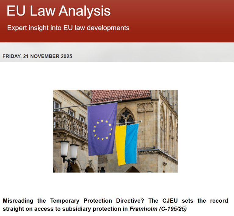 Our Member, Dr Meltem Ineli Ciger, Associate Professor of International Law, Suleyman Demirel University, has published a new post blog on EU Law Analysis, titled “Misreading the Temporary Protection Directive? The CJEU sets the record straight on access to subsidiary protection in Framholm (C-195/25)”.